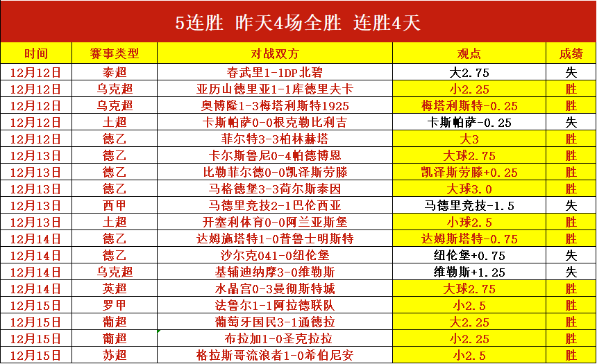 5连胜,昨天4场全胜,连胜4天,今天赛事依旧选择强项系列,持续稳,别错过了!笔者近期前进脚步表现仍然优秀,本日赛程继续出击,争取在稳健的基础上进一步突破!