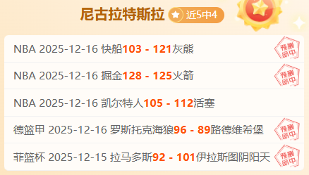 【成绩回顾】近5胜4,昨NBA、CBA、菲篮杯、德篮甲拿下胜果,信心赛事多项拿下连胜!尼古拉资深作者情报解读再有方法,信心强项情报解读连胜赛事再次出发,长期解读惊喜不断,此前作者创下4次双位数胜战绩,掌握着一手赛事资深情报,本期继续分享充满奇妙体育赛事,敬请大家持续关注!!